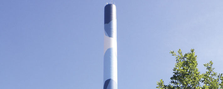 I Brøndby har vi gjort en særlig indsats for visuelt at transformere store tekniske fjernvarmeinstallationer til noget unikt i lokalmiljøet - nemlig at omdanne høje skorstene fra blot at være ”aftræksrør for kedler” til lokale kunstneriske vartegn.
