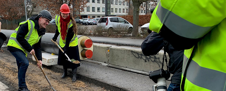 Borgmester Marie Stærke og distributionschef Thomas Hopp tog hver især det første spadestik til 2. bølge af fjernvarme. I Nylandskvarteret anlægges en ny stor hovedledning, som skal forsyne et stort boligområde med 1.850 boliger omkring Nylandsvej samt et erhvervsområde i Køge Nord.