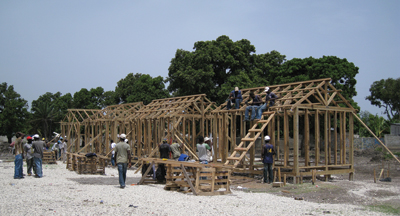 Alle ledige kvadratmeter i millionbyen er udnyttet til teltbyer. Der er cirka 1.100 af disse camps i og omkring Port-au-Prince. Jeg var på besøg i en teltby, hvor der boede cirka 600 personer. I det ene hjørne af pladsen var Røde Kors arbejdere og lokale ved at bygge ”permanente midlertidige boliger”. Målet er, at få folk ud af teltene, inden den næste katastrofe rammer: Orkaner. Desværre er problemet, at de nye teltbyer kun kan rumme 300 personer.