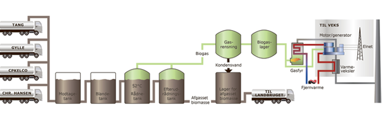 I løbet af sensommeren 2015 starter produktionen på Solrød Biogas. Biogassen vil årligt udgøre seks millioner kubikmeter og leveres videre til VEKS, der brænder gassen af i en gasmotor i Solrød Fjernvarmes bygninger. VEKS ejer disse bygninger. Gasmotoren vil via en generator producere strøm, og kølevandet omdannes til fjernvarme til VEKS’ system.